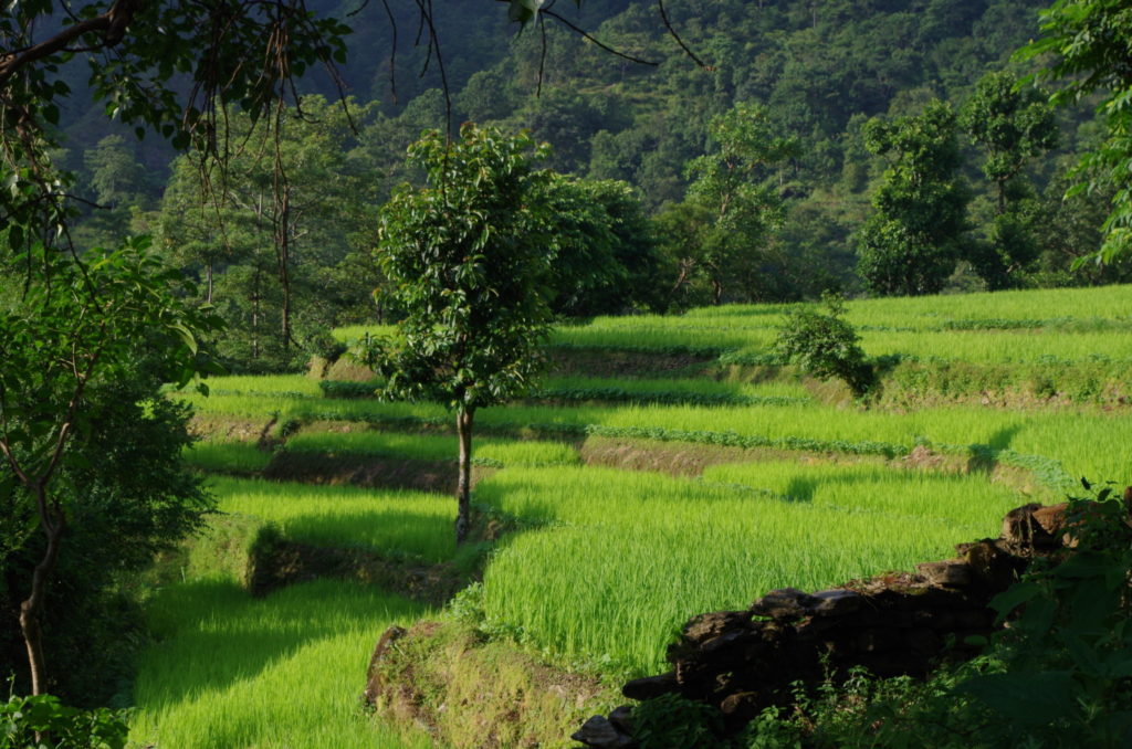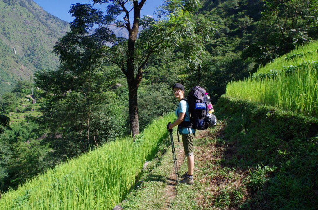 Postanowiliśmy zacząć szlak od początku, po wyjściu z Besisahar złapaliśmy jednak autobus do Bhulbhule, kilka kilometrów dalej (kończy trasę w jeszcze kolejnej wiosce, Ngadi). Kierowcy i autobusy za jazdę po takich wybojach zasługują na ogromne uznanie. Z Bhulbhule można już było na dobre zacząć wędrówkę przez zielone terasy ryżowe.