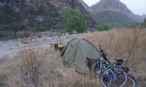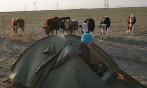 Noclegi bywały lepsze i gorsze: nad rzeką przy wioskowym parku, w suchym zbiorniku przeciwpowodziowym, w opuszczonym sadzie, na farmie wiatrowej czy na półpustynnym, wietrznym pastwisku wśród krów i toczących się jak na dzikim zachodzie kulistych krzaczków .
