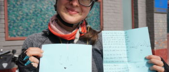 Widoczne na zdjęciach liściki były pisane przez dzieciaki do późnej nocy, kiedy my już zdążyliśmy zasnąć. Najpierw poleciały do sklepu obok po papier i później siedziały kilka godzin z translatorem, żeby przygotować laurki. W rezultacie rano na rowerach znaleźliśmy je w ręcznie robionych kopertach. Z kolei dwa dni później u pana Bosa (jego gabinet na ostatnim zdjęciu, wcześniej poranna wycieczka i jeden z posiłków), zostaliśmy ugoszczeni niemal po królewsku, napojeni i nakarmieni do rozpuku. I chociaż można było się w końcu umyć i wyspać w komforcie, obie gościny wspominamy równie ciepło.