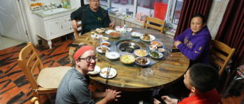 Translator z Baidu okazał się bardzo pomocny przy komunikacji z ludźmi, pozwalał nawet prowadzić krótkie, proste rozmowy, nawiązywać znajomości. Jak podczas wizyty u Pana Szefa – zamożnego właściciela cementowni, czy u dwójki dzieciaków i ich skromnej babci. W obu przypadkach gospodarze gościli nas tym, co mieli najlepszego.