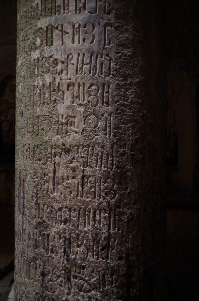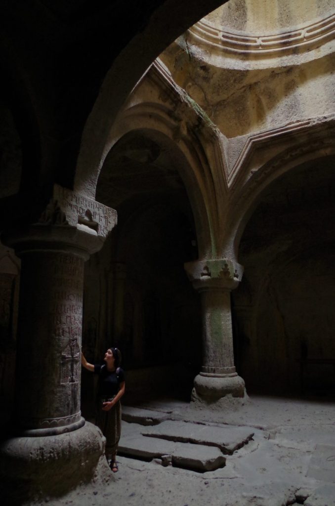 We wnętrzu dało się trafić na występy zespołu śpiewającego tradycyjne pieśni niosące się echem po pustym pomieszczeniu. Po dwóch godzinach, w klasztorze Garni spotkaliśmy tę samą grupę, z tym samym kilkunastominutowym występem. Tu i tu, po występie artyści sprzedawali niemieckim wycieczkom za 10 euro swoje płyty. Sam śpiew jednak piękny – próbka nienajlepszej jakości poniżej: