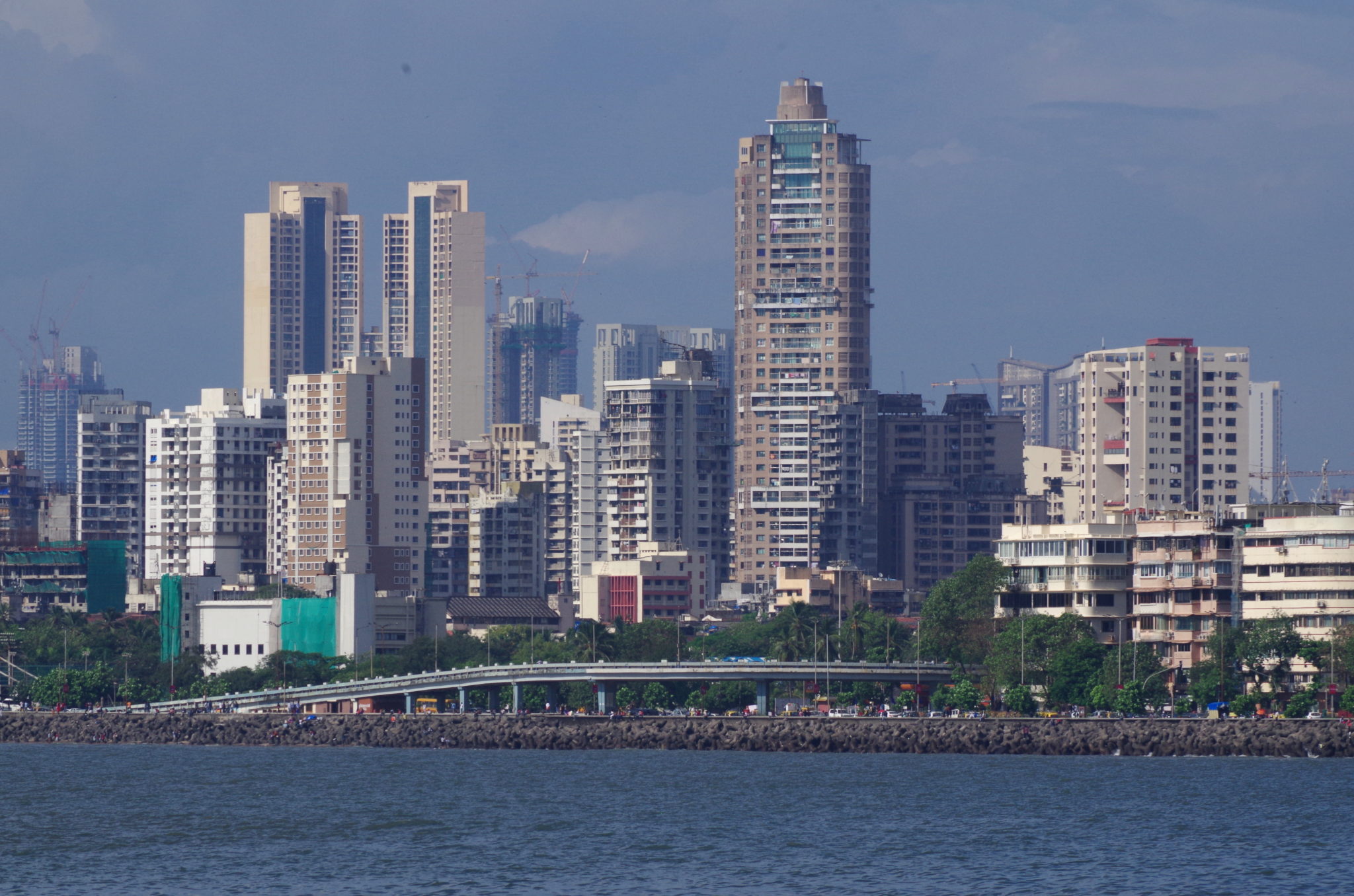 Trudno mówić tutaj o jakiś ścisłym centrum, za takie może uchodzić Colaba i ogólnie cała część miasta na południe od dworca Króla Śiwadźiego (Chhatrapati Shivaji Terminus) do Bramy Indii (Gateway of India). Po centrum krążą czarno-żółte taksówki (riksze nie mają wjazdu), są szerokie chodniki, wygląda całkiem schludnie. Kolonialne budowle w stylu wiktoriańskim górują wśród zadbanej zieleni i ulic zapchanych taksówkami. Z perspektywy nabrzeża widać wysokościowce i szereg rezydencji dla bogaczy.