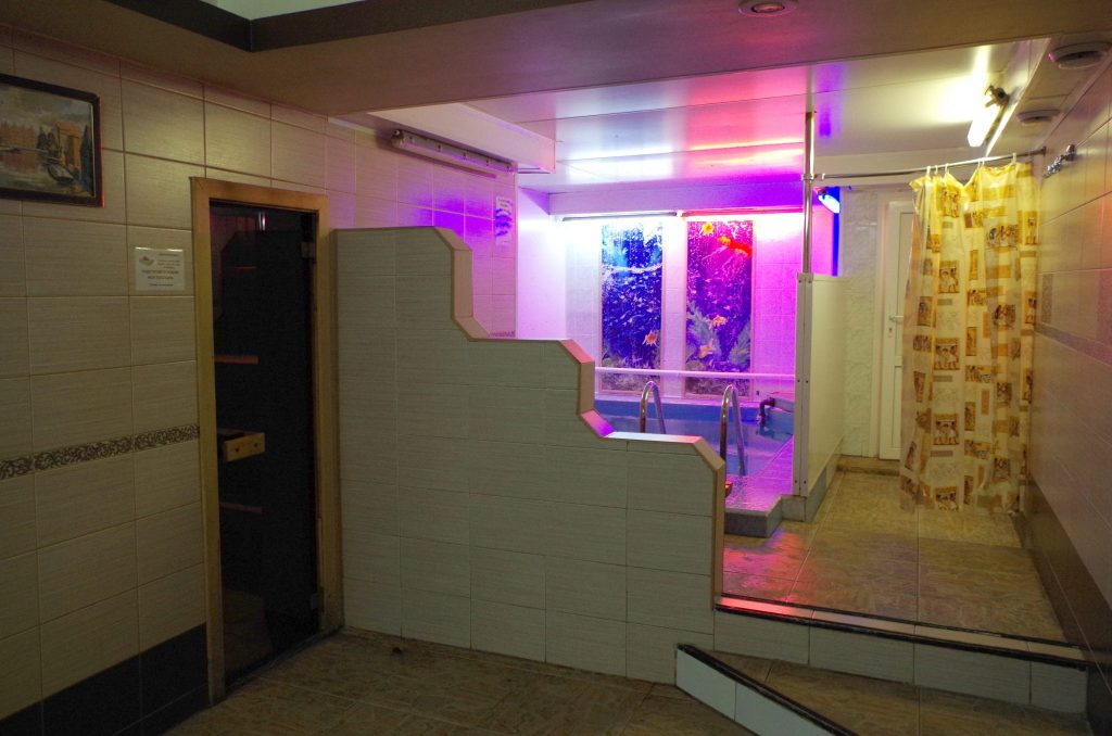 Sauna była dla nas zbawieniem po kilku dniach w górach i przed dalszą podróżą do Irkucka. Za równowartość 12 złotych na osobę (po odrobinie targowania) dostaliśmy półtorej godziny sauny z lodowatym basenem i. . . stołem bilardowym. Mażna trafić też na saunę „ogólną” – damską i męską, ale zastała nas tam akurat awaria.