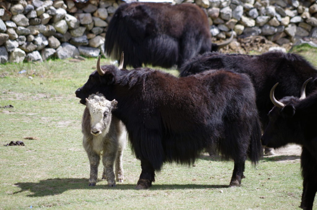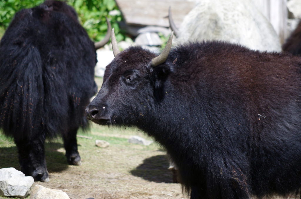 W okolicach Kyanjin Gompa i w samym miasteczku pasie się bardzo wiele jaków. Z wielkimi rogami i kędziorami do ziemi skubią ledwo podrosłą trawę groźnie od czasu do czasu pomrukując. Z bliska wydają się naprawdę niebezpieczne, szczególnie jak zechcą kawałek podbiec, bo wcale nie są tak ociężałe, na jakie wyglądają. Te wielkie włochate krowy to bogactwo tej doliny, gdzie niewiele jest przestrzeni pod uprawy, a roślinom i innym zwierzętom trudno by było przetrwać surowy klimat. W miasteczku znajduje się nawet założona w 1955 roku przez szwajcarskich specjalistów wytwórnia serów.