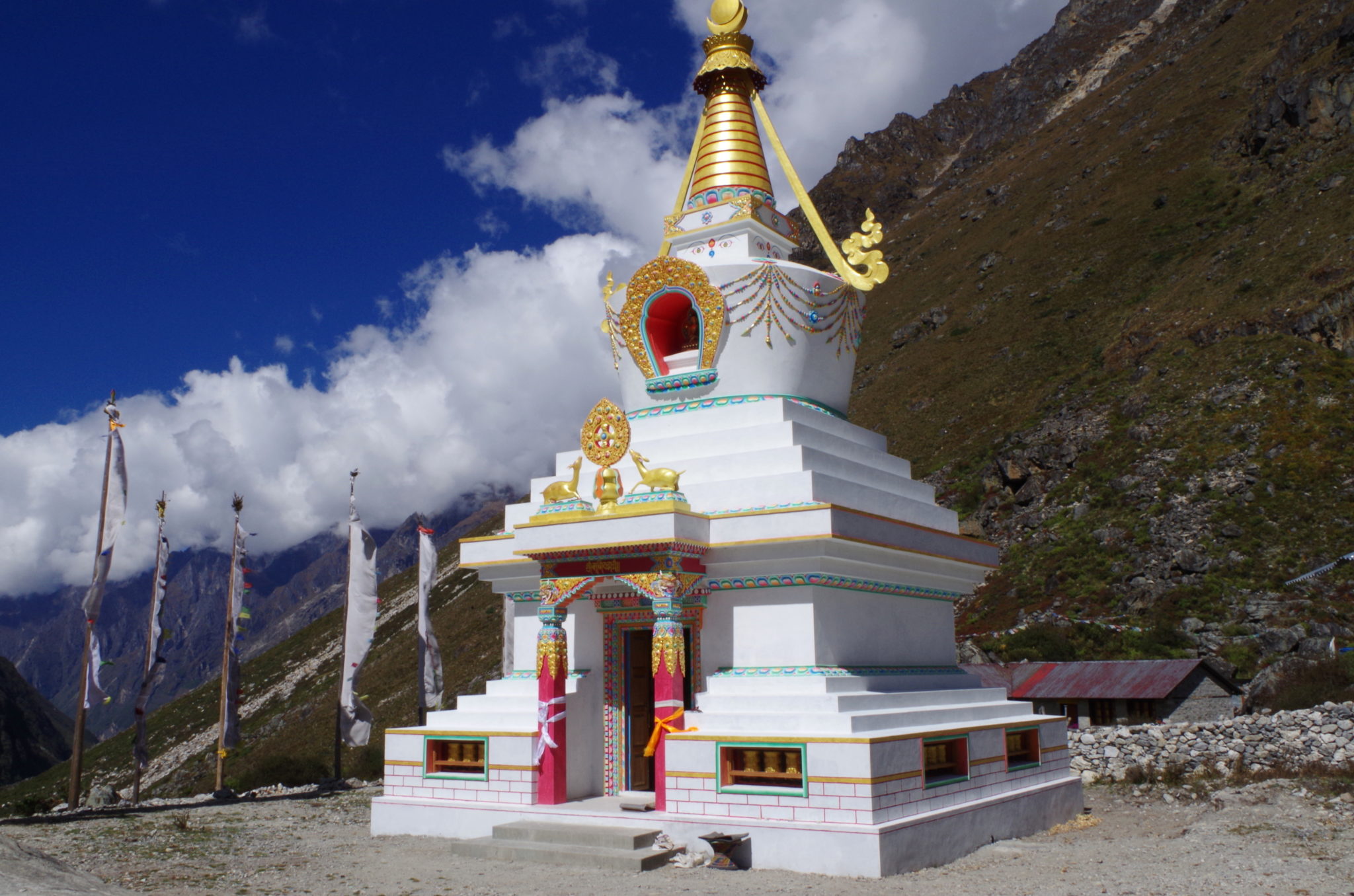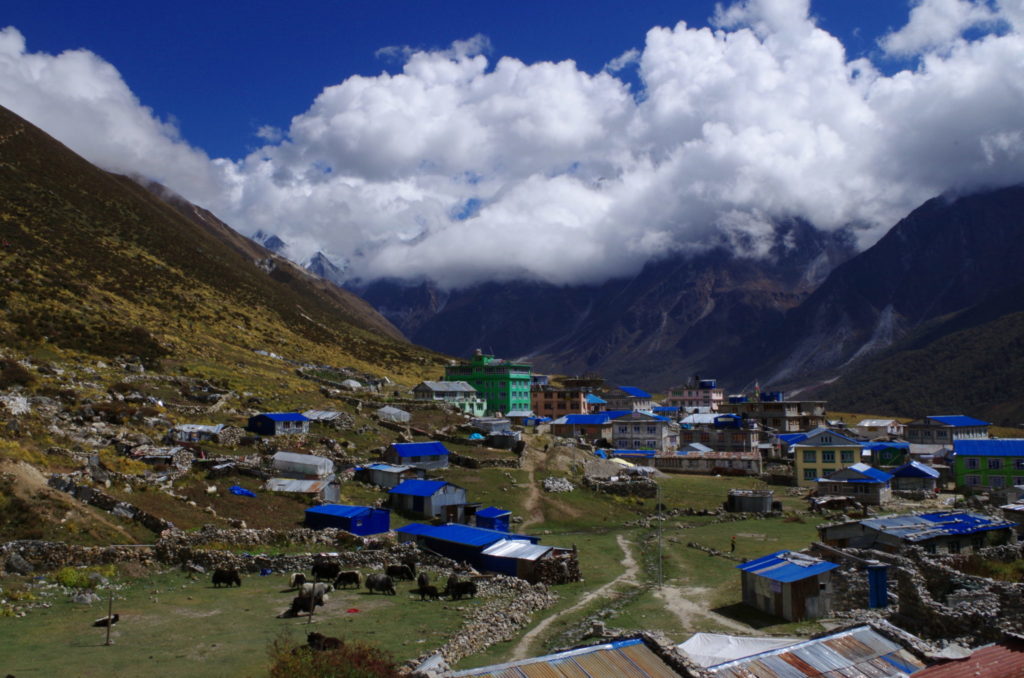 Kyanjin Gompa to ostatnia stale zamieszkała osada w dolinie Langtang. Trzęsienie ziemi obeszło się z nią stosunkowo łaskawie, zniszczenia nie były wielkie. Teraz jest to główne miasto w regionie z najbogatszą ofertą noclegową, działającymi piekarniami, sklepikami i wytwórnią serów z mleka jaków. I to wszystko na wysokości ponad 3800 m n.p.m.