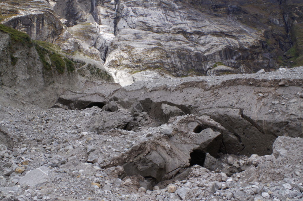 Osuwisko i zawieszona dolina powyżej. To tamtędy skanalizowane zostały upłynnione masy lodu i skał, spływając prosto na miasteczko