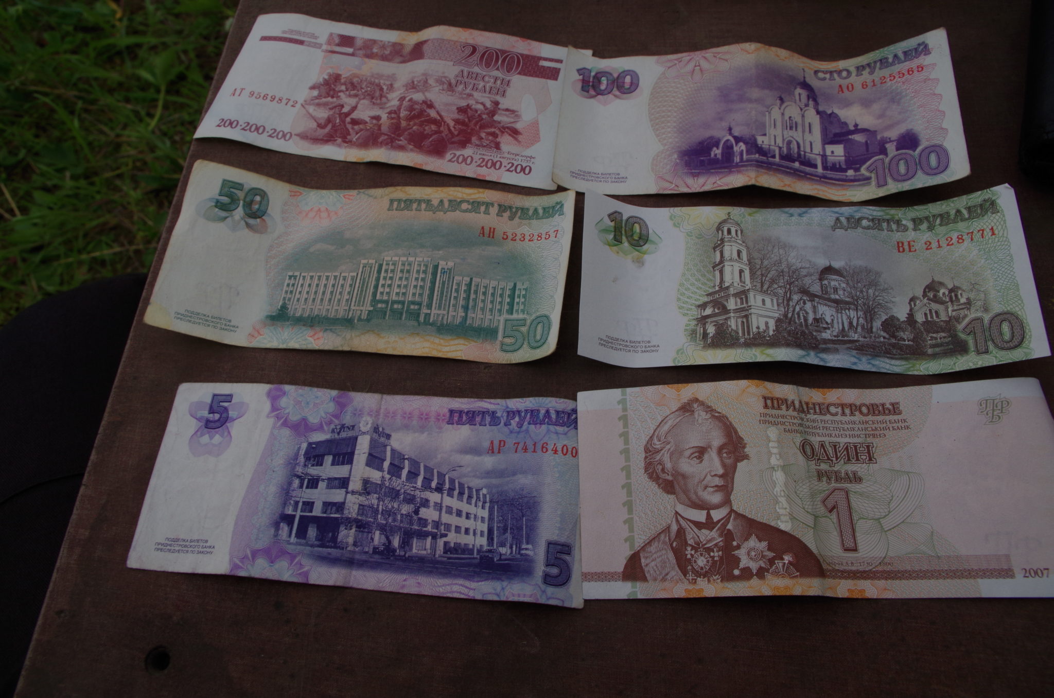 Osobną ciekawostkę stanowią naddniestrzańskie pieniądze. Po pierwsze niektóre nominały występują też w postaci plastikowych żetonów (nie udało się ich jednak odnaleźć). Po drugie, republika posiada ograniczone zasoby nie tylko gotówki ale także bohaterów i miejsc do upamiętnienia. Na kilku nominałach widnieją więc podobizny Aleksandra Suworowa – rosyjskiego generalissimusa, a poza tym ukraińskiego poety Tarasa Szewczenki oraz mołdawskiego hospodara Dymitra Cantemira. Na banknotach przedstawiono także mało ciekawe obiekty jak budynki rządowe, wytwórnię koniaków Kvint i cerkiew wybudowaną w latach 90. XX wieku. Wszystko to do odszukania w Tyraspolu. Poza tym upamiętniono także kompleks cerkiewny i pomnik w miejscu zgromadzenia armii w 1944 roku w Kickanach.