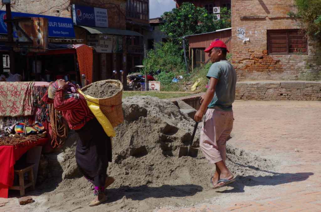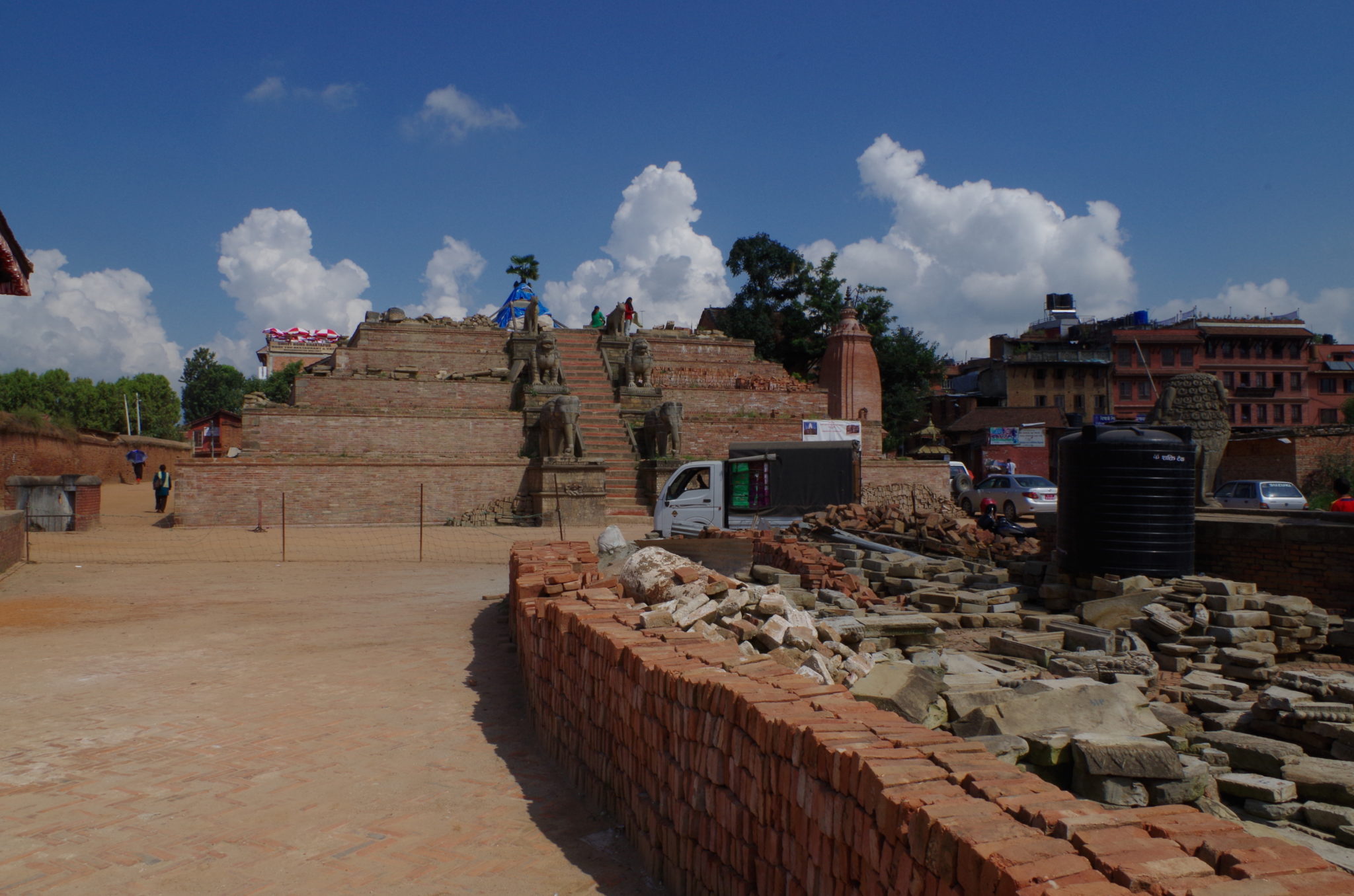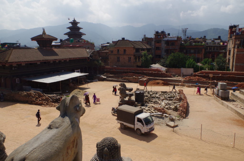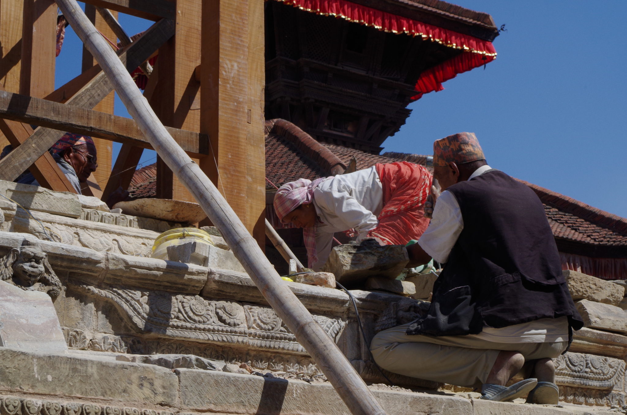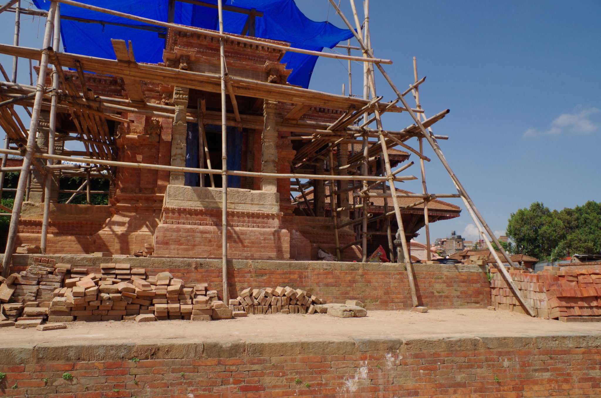 Odbudowa idzie na szczęście dość szybko. Z cegieł i kamieni sukcesywnie wznoszone na nowo są kolejne świątynie. Praca jest ciężka, wykonywana głównie przy pomocy ludzkich rąk. Tutaj opisano Bhaktapur jako przykład rzadkiego w Nepalu, transparentnego i sprawnego wykorzystania funduszy na odbudowę.