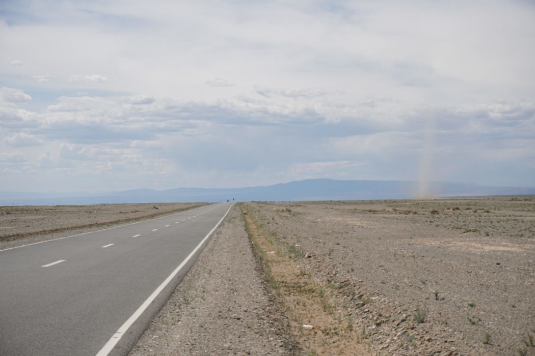 Silny wiatr nie tylko utrudniał jazdę, często tworzyły się wokół mini trąby powietrzne, pierwszy raz doświadczyliśmy też (niewielkiej) burzy piaskowej.