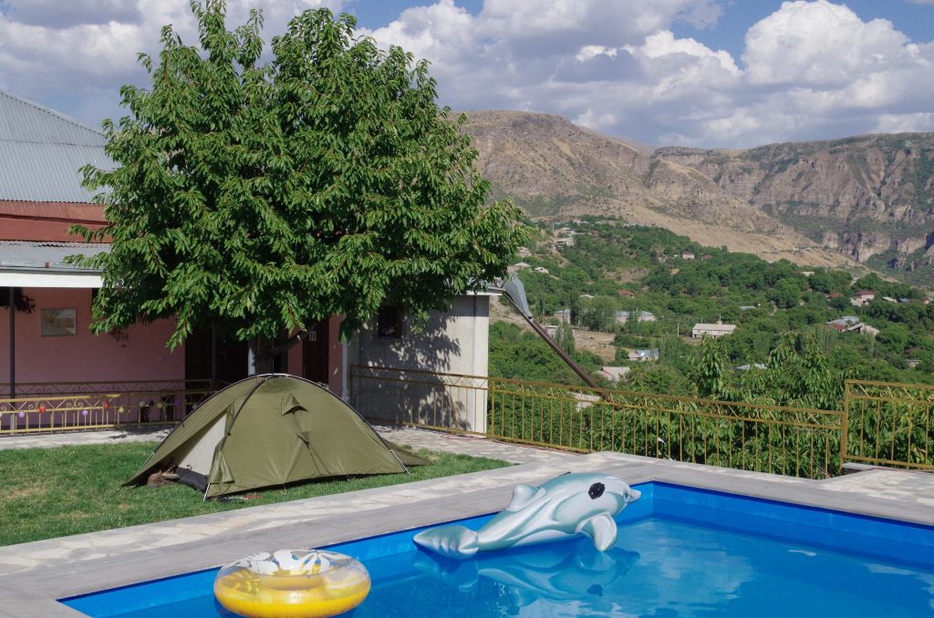 Pod namiotem, ale w luksusach. Pomiędzy Garni i Geghard, camping 3G prowadzony przez Holendrów, którzy przede wszystkim zajmują się zarządzaniem w okolicy… uprawą szklarniowych róż. Ponoć większość tych kwiatów w Erywaniu pochodzi od nich