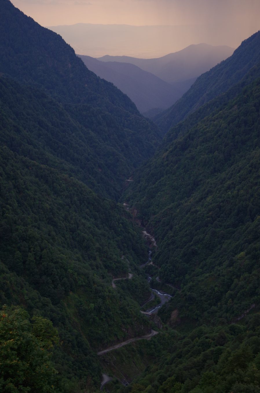 Widok z Górnego Omalo na północ – za tym pasmem górskim jest już Czeczenia.