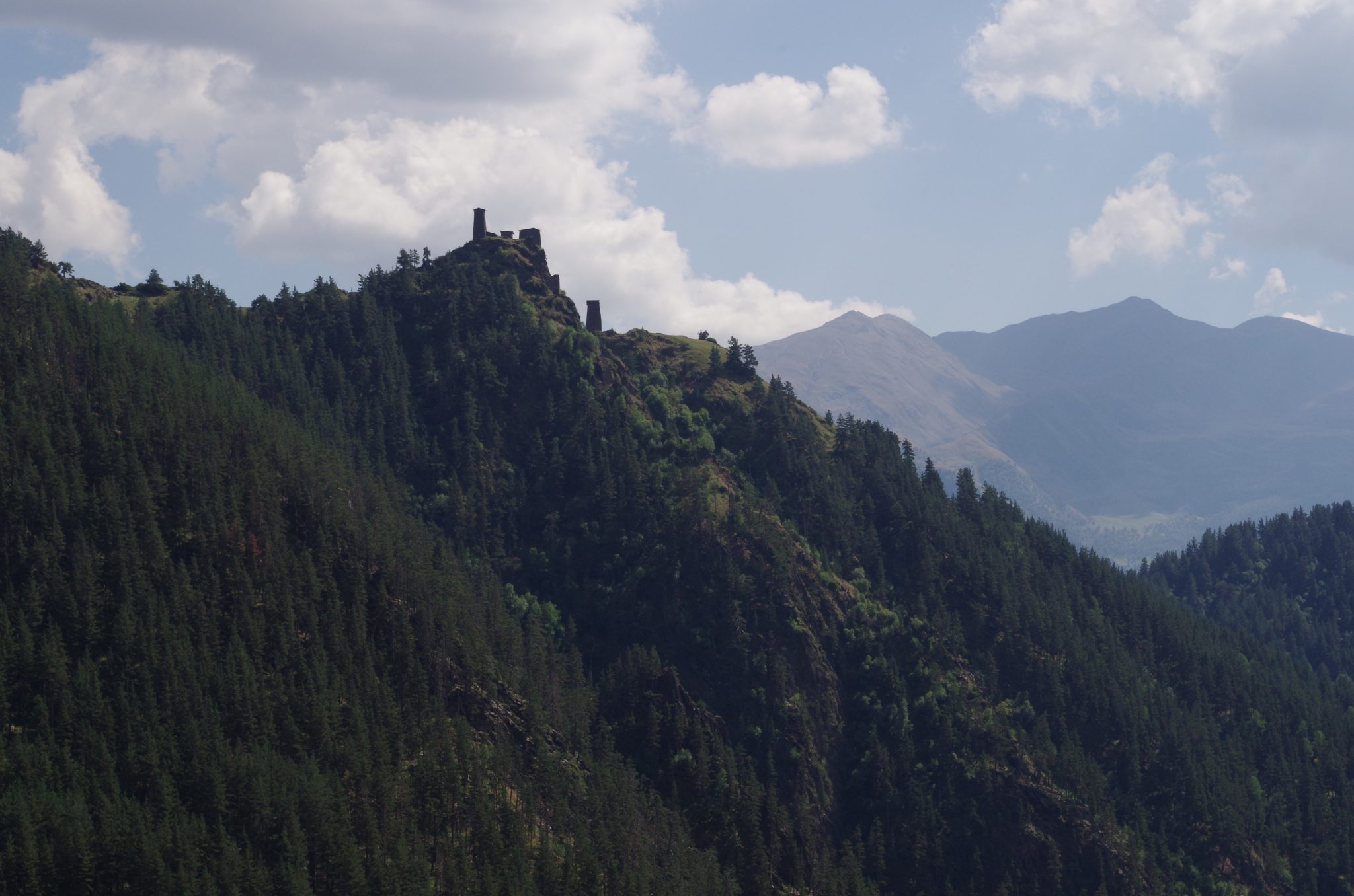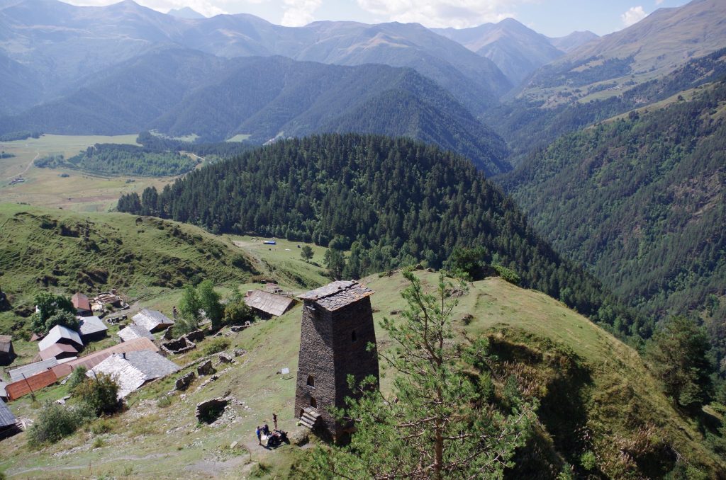 Zagłębianiu się w Tuszetię towarzyszy dziwna świadomość klaustrofobii, którą potęgują wysokie szczyty piętrzące się wokół i możliwość wyjazdu do cywilizacji uzależniona od kaprysów pogody. Gdziekolwiek nie spojrzeć, góry odcinają horyzont i nawet osady w Tuszetii, stworzone z trwałego i dostępnego materiału – kamienia – wyglądają jak warowne twierdze. Każda dolina, każdy ród w tym niedostępnym terenie skupiał się na obronie przed światem zewnętrznym – zarówno przed grabieżą lub zemstą innego rodu, jak i przed napierającym z północy imperium rosyjskim. W celach obronnych powstawały także kamienne wieże rodowe – dzisiaj najłatwiej dostępne dla zwiedzających w regionie Swanetii, ale obecne na całym Kaukazie.