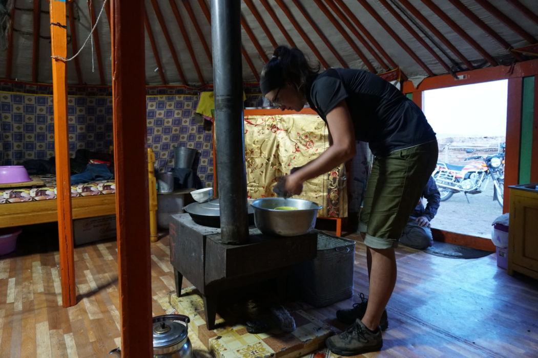 Jurty nie są powodem do wstydu, są normalnym elementem krajobrazu. Wszystko ma tam swoje miejsce – w mongolskiej jurcie piec stoi na środku, po prawej stronie jest cześć kuchenna, po lewej ołtarzyk oraz telewizor zasilany solarem i ściągający wieści z odległej stolicy za pomocą talerza satelitarnego. Na piecu stoi duża miska, w której się gotuje – głównie baraninę z ręcznie robionym makaronem, cebulą i szczyptą soli. Wokół jurty często są drewniane zagrody do zapędzania zwierząt na noc.
